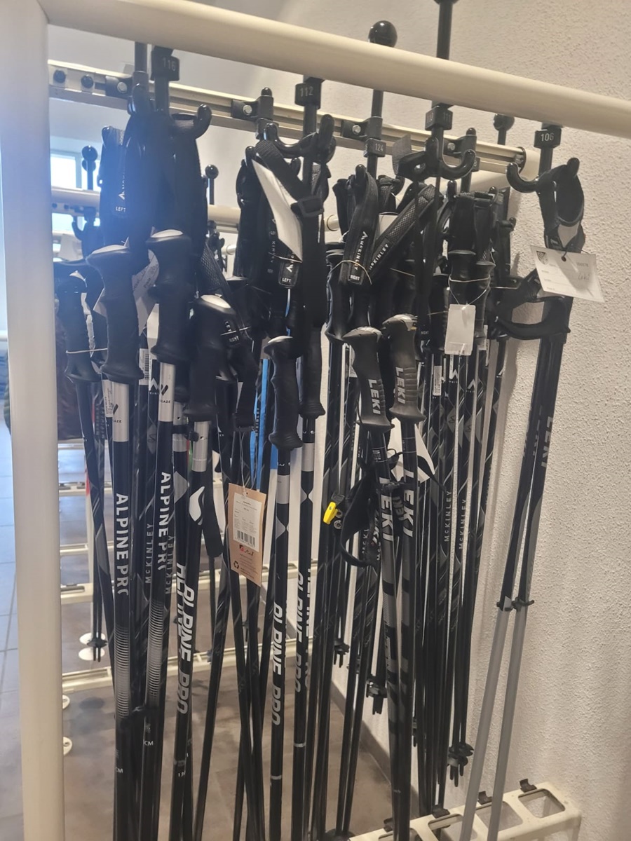 Neben Skiern und Schuhen für den Alpinbereich waren auch Langlaufausrüstungen, Snowboards, Kleidung und Zubehör wie Stöcke, Brillen Helme oder Handschuhe im Sortiment.