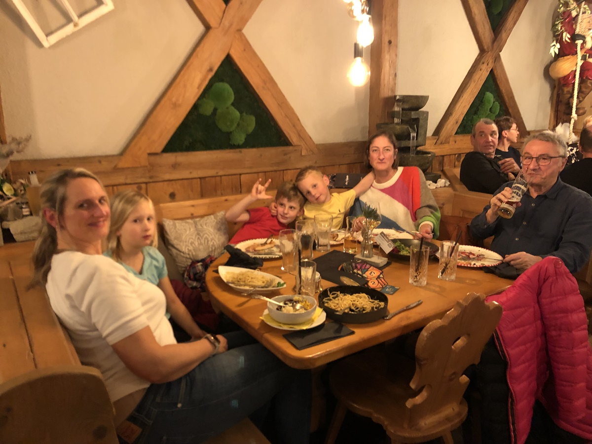 Am Freitag starteten wir um 18 Uhr mit zwei Bussen und insgesamt 19 Kindern voller Vorfreude in Richtung Todtmoos. Dort erwartete uns bereits ein leckeres Abendessen in unserer gemütlichen Skihütte.