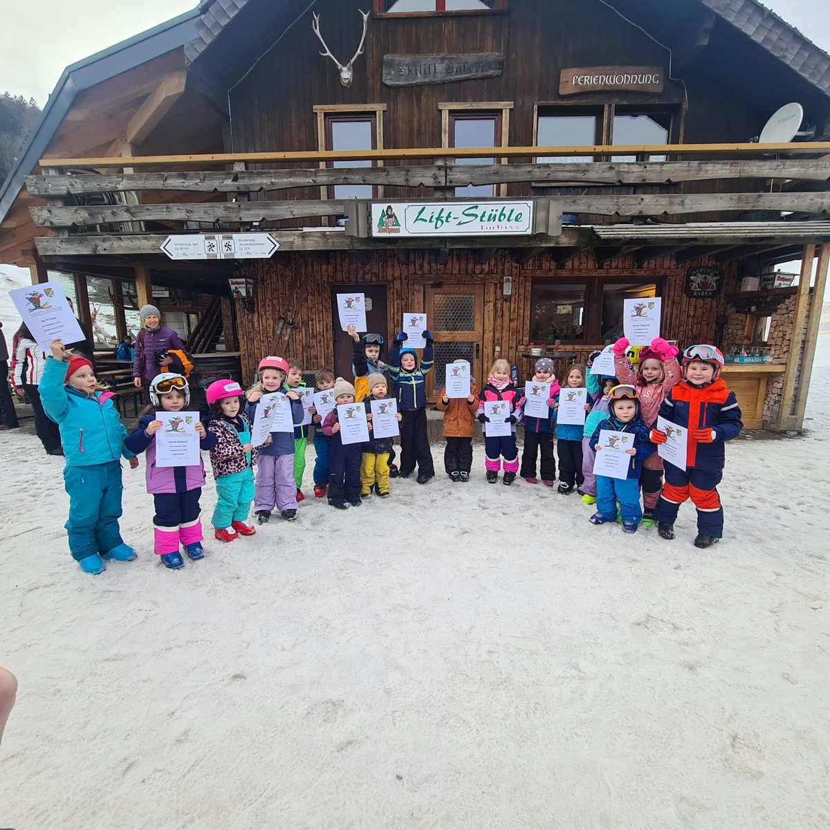 Am vergangenen Wochenende gingen einige Kinder bereits an den Lift und probierten das Erlernte im flachen Gelände aus. Stolz zeigten sie am Ende des Kurses ihren Eltern wie gut sie ihre Skier schon beherrschten.