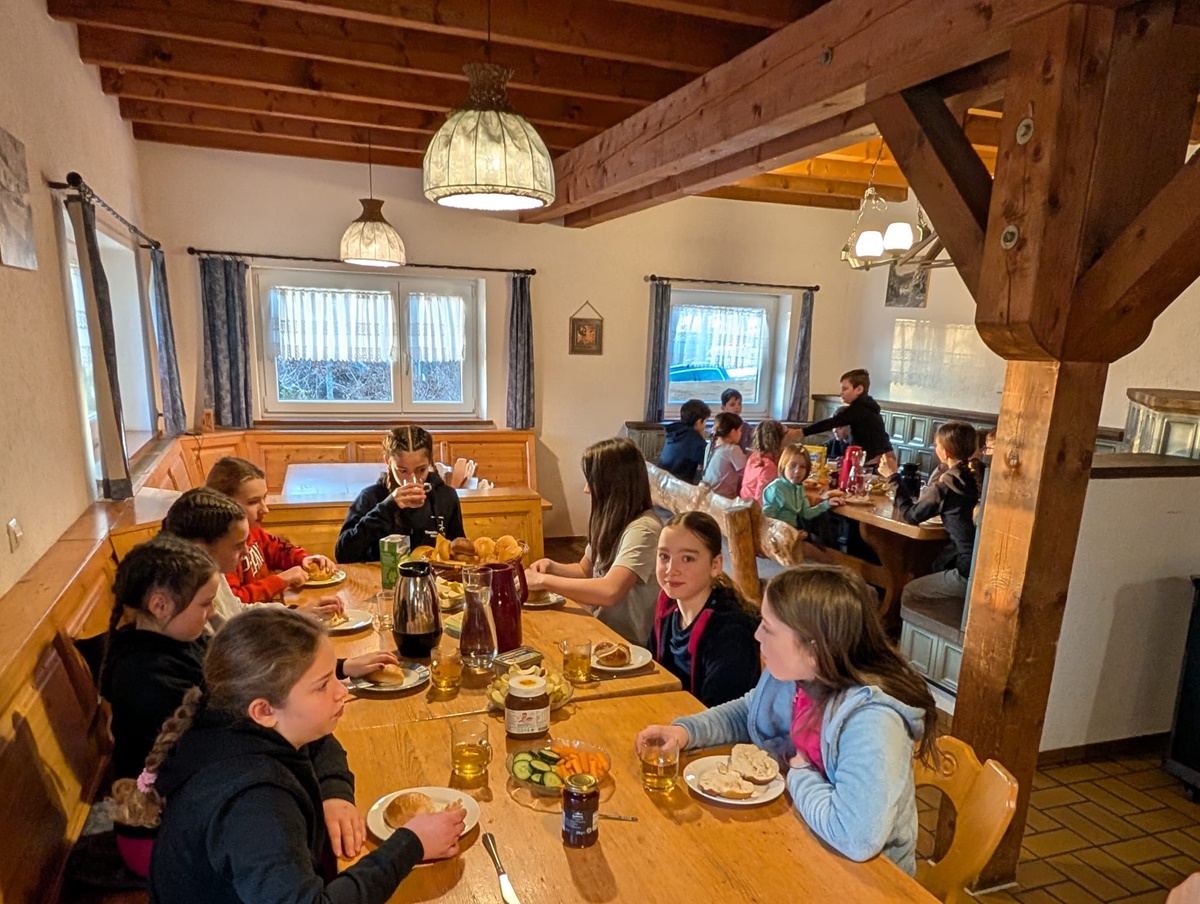 Am Freitag starteten wir um 18 Uhr mit zwei Bussen und insgesamt 19 Kindern voller Vorfreude in Richtung Todtmoos. Dort erwartete uns bereits ein leckeres Abendessen in unserer gemütlichen Skihütte.