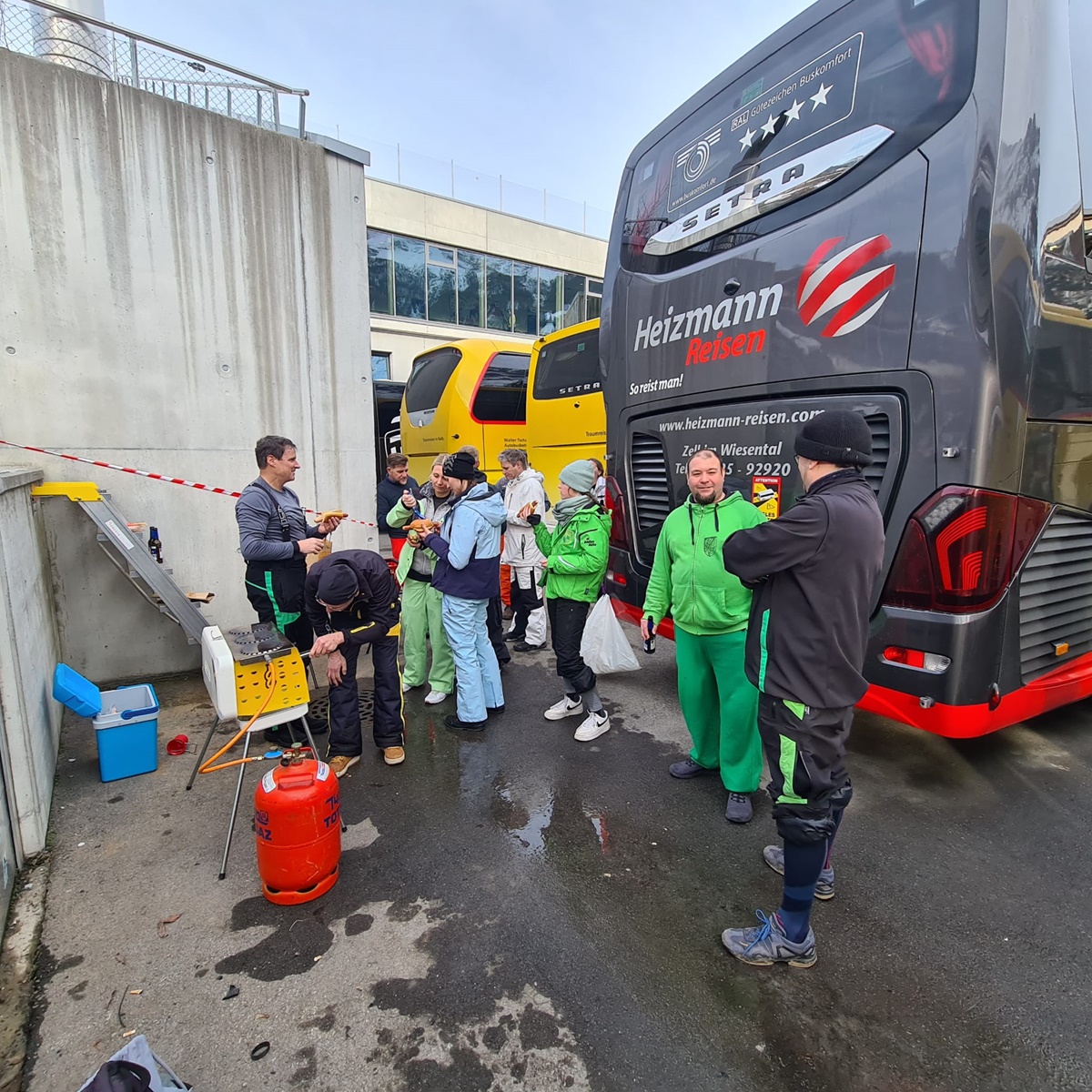 Nachdem sich die Sportlerinnen und Sportler gegen Abend so allmählich wieder am Bus einfanden, gab es noch ein kleines Abschlussgrillen auf dem Parkplatz, damit alle gestärkt den Heimweg antreten konnten.