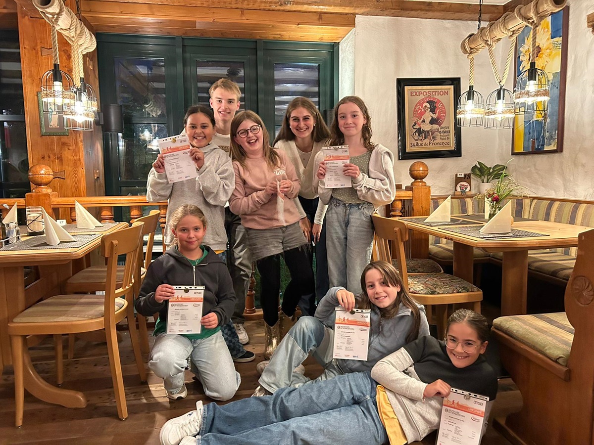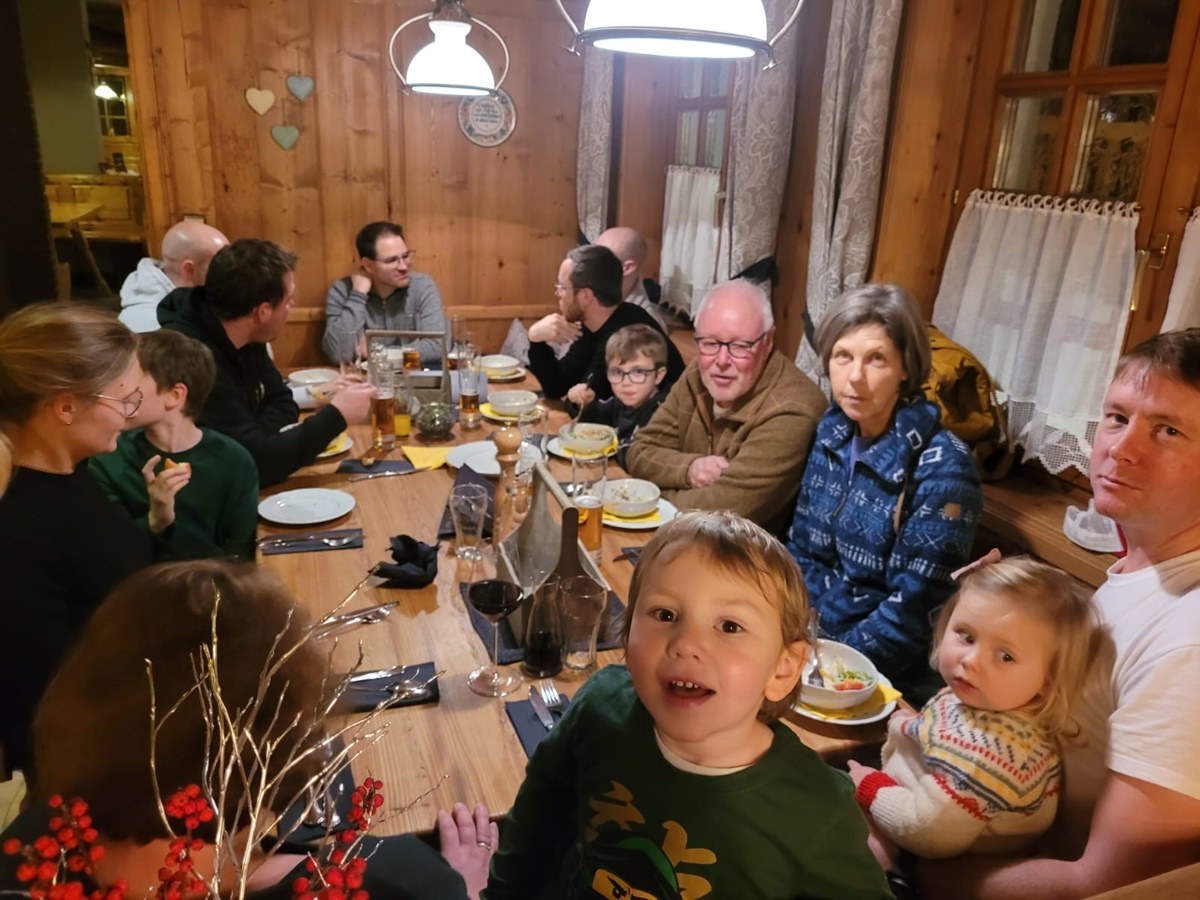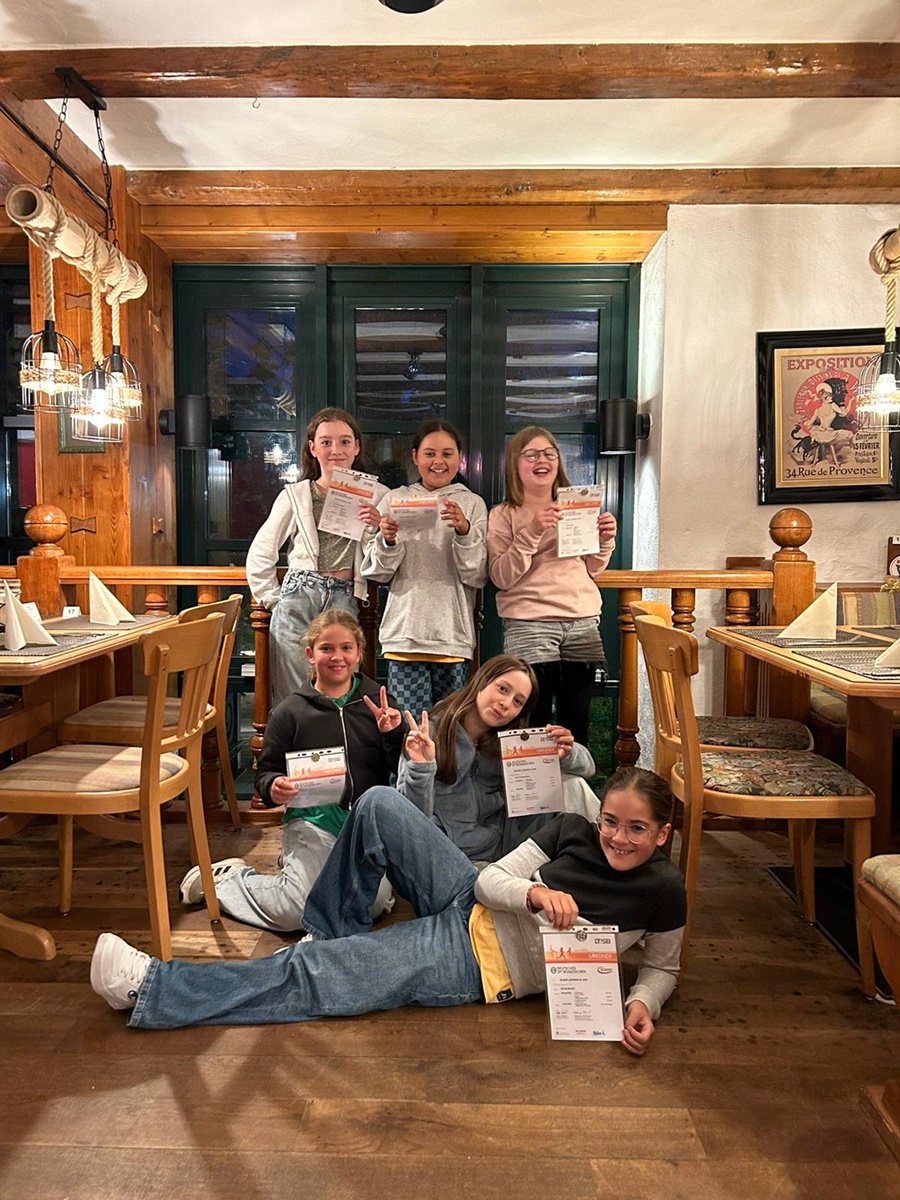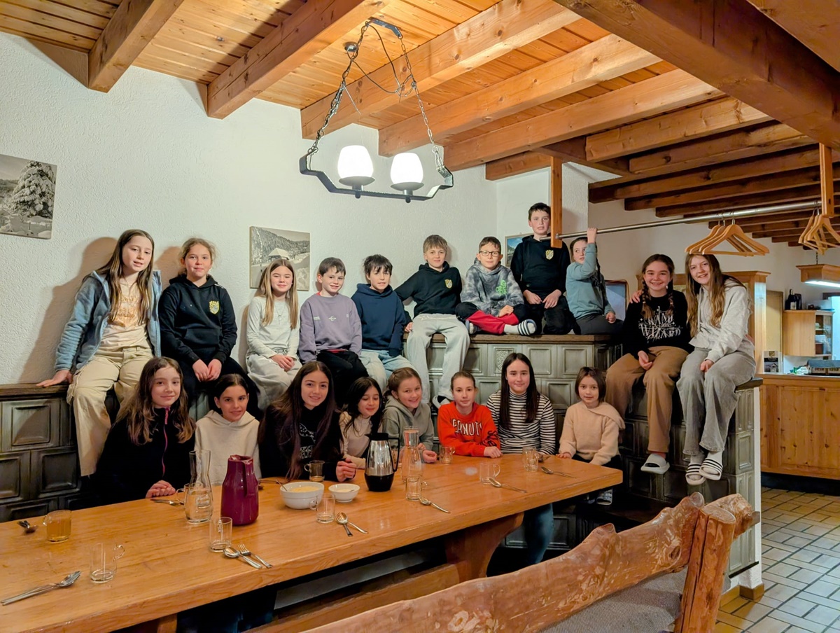 Nach dem gemeinsamen Spaghetti-Essen versammelten sich die Kinder vor der Hütte, um Marshmallows über dem offenen Feuer zu rösten. Bei einer entspannten Runde am Lagerfeuer war die Stimmung perfekt, bevor es mit einem aufregenden Spieleabend weiterging. Um 22:30 Uhr endete der Abend mit dem Zapfenstreich, sodass alle gut ausgeruht und fit für den kommenden Skitag waren.