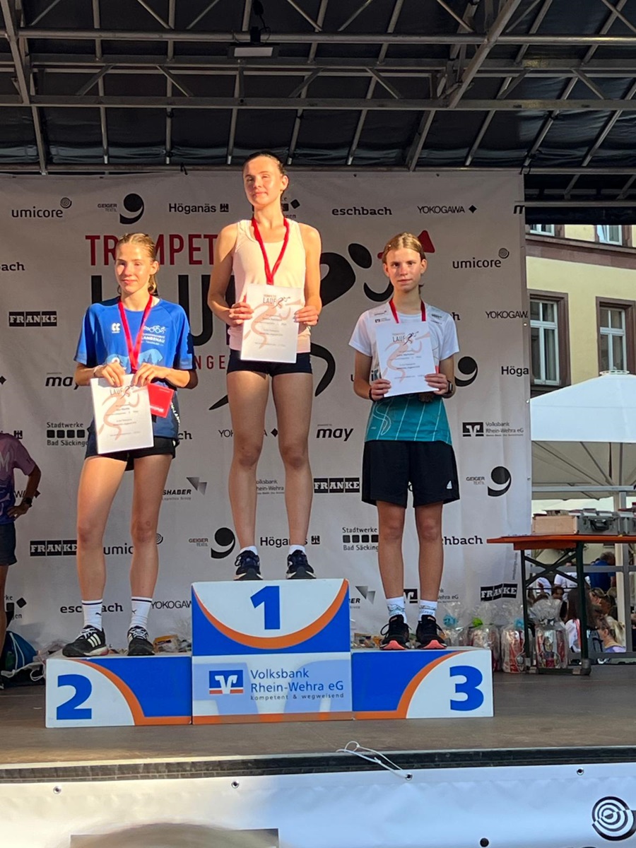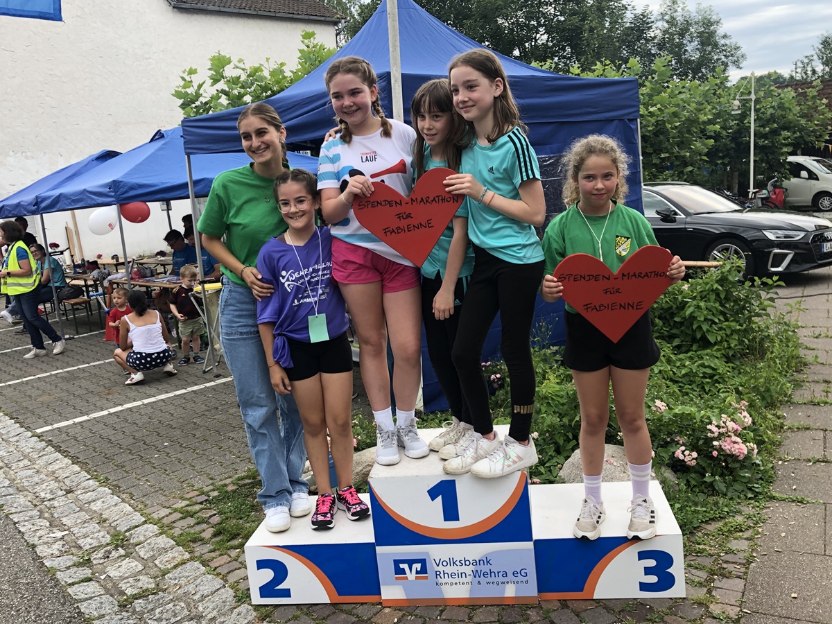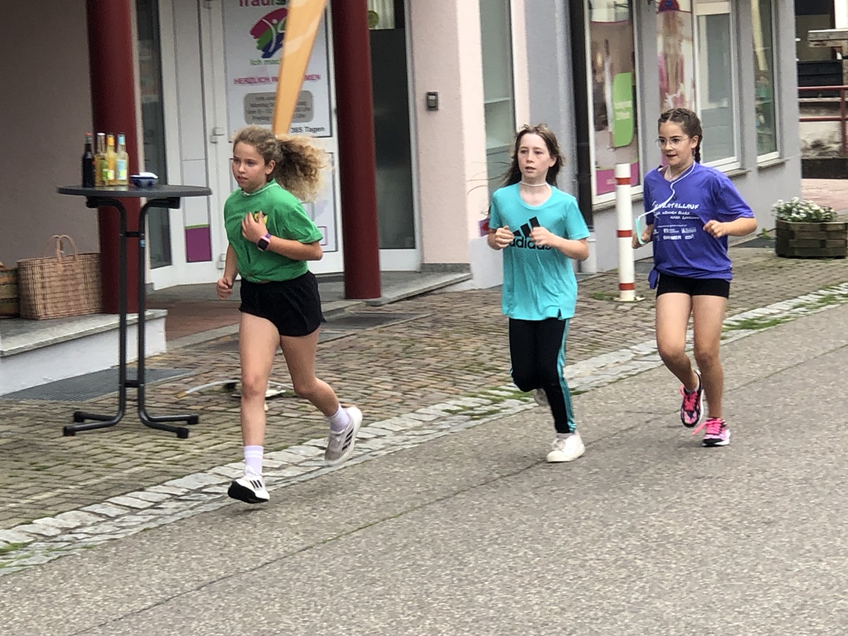 Fünf Mädchen im Alter von 10 und 11 Jahren stellten sich der Herausforderung so viele Runden wie möglich auf der 250m langen Strecke zu laufen. Am Start waren Jana Nann, Hanna und Laura Kunzelmann, Lilly Huber und Emilia Berlich. Nach knapp 2 Stunden beendeten sie den Lauf. Insgesamt hatten sie in der Zeit 85 Runden absolviert.